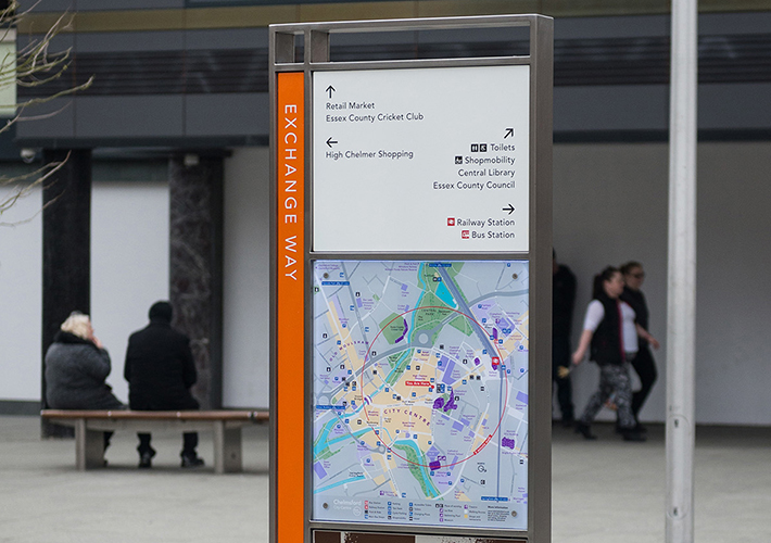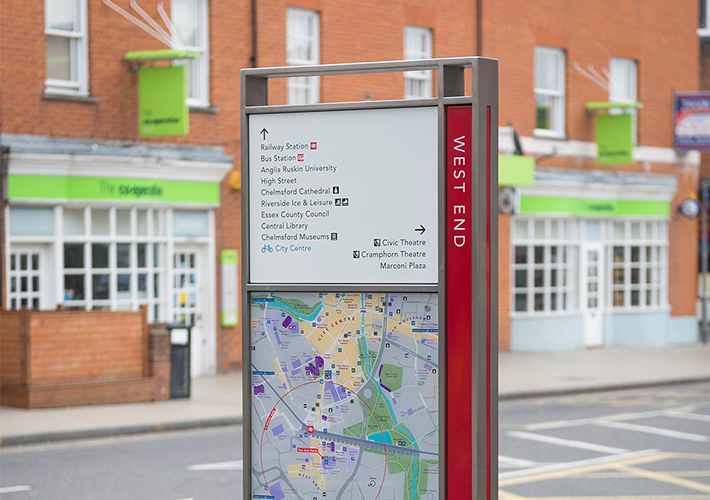 We were commissioned by Chelmsford City Council to design a bespoke new wayfinding scheme.